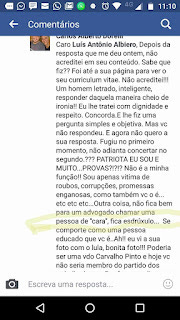 "Meu caro. Primeiro, quem você pensa que é meu chefe, lamento informar, não é meu chefe. Primeiro engano. Segundo engano, quem você pensa que é meu chefe está sendo investigado há quarenta anos, os Procuradores e juiz espetaculosos e midiáticos estão doidos para prendê-lo e não têm uma única razão qualquer para isso. Agora, se você sabe de algo contra quem você acredita que seja meu chefe, não perca tempo, preste esse grande serviço à nação, envie uma simples mensagem aos lavajatistas que têm até página na internet e assessoria de marqueteiro à disposição, relate os fatos que sabe, envie as provas que certamente só você tem. Sabe por quê? Eu vou dizer porque. É que esse seu comportamento parece coisa de gente leviana. E eu sei que você não é um sujeito leviano. Então, cara. Seja patriota! Envie!"